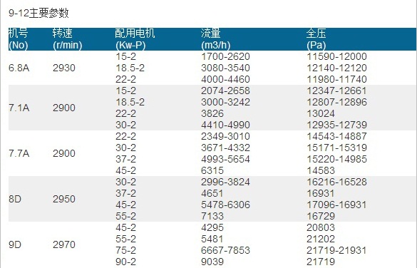 市場上常用的六款高壓離心通(tōng)風機型號及參數表