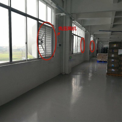 廠房車間的牆壁窗戶上安裝負壓風機,強製(zhì)把車間內大(dà)量聚集(jí)的高溫悶熱空氣(qì)排到車間外,讓車間內形成負壓態勢,迫使車間外的空氣湧入車(chē)間內對流(liú)換氣,降低車間內高溫悶熱空氣的含(hán)量,提高車間內空(kōng)氣流(liú)通的速度,此(cǐ)方法適合本來空氣流通(tōng)不暢(chàng),整體(tǐ)車間(jiān)都(dōu)有高溫(wēn)悶熱(rè)情況需(xū)要解(jiě)決(jué)的車間。