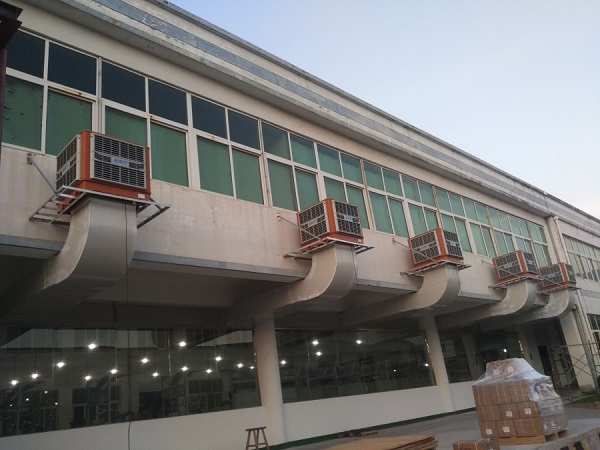 3、廠房車(chē)間降溫通風之(zhī)環保空調,對車間外(wài)空氣降溫後送入車間內降溫。